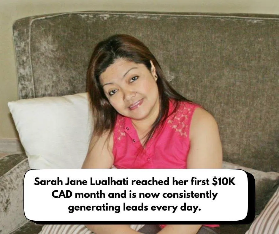 🌟Sarah Jane Lualhati: reached her first $10K CAD a month and now consistently generating leads everyday
